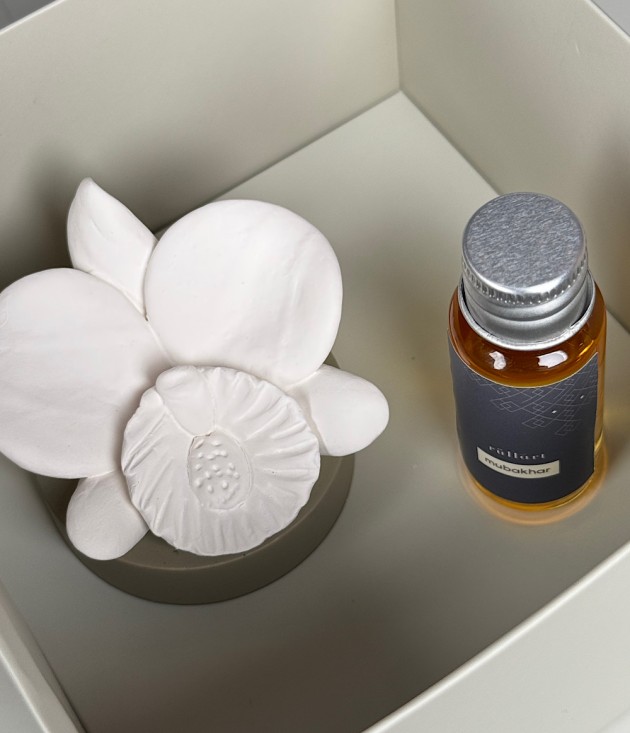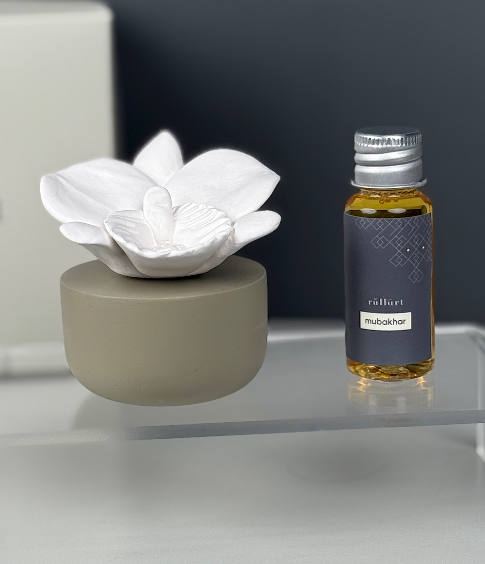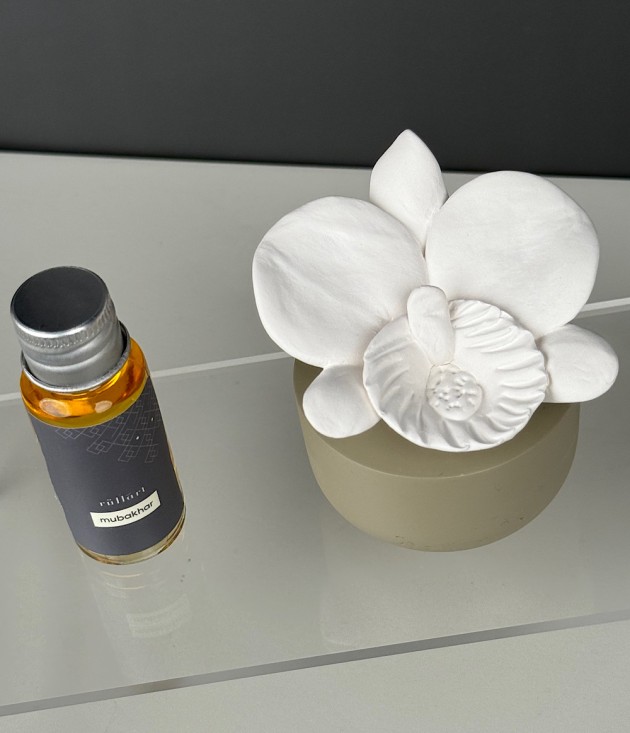 معطر جو سيراميكي برائحة الأوركيد مع قاعدة خشبية، 6.6 × 6.8 سم