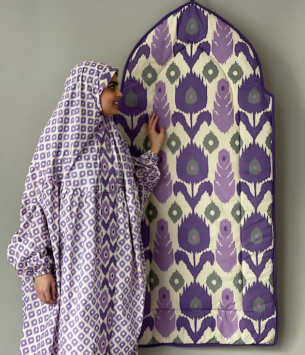 سجادة صلاة مبطنه بالديباج قياس 140*70 سم ، يوجد في خلف السجادة جيب لحفظ ثوب الصلاة